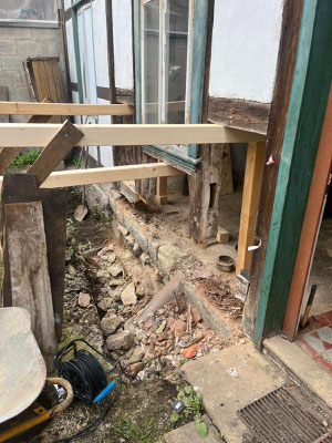 🏚️ Im Dachgeschoss beginnt diese Woche die Firma Grüneberg mit der Sanierung der maroden Deckenbalkenköpfe.